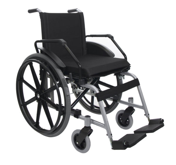 FuncionamentoConstruída em alumínio, estrutura dobrável em X, pintura eletrostática epóxi, estofamento em Nylon, almofada em espuma, rodas traseira de 24″,injetadas em Nylon com pneus antifuro cinza, rodas dianteiras de 6″ com pneus antifuro cinza, freios bilaterais, protetor de roupas, apoio para pés articulados e reguláveis em altura, apoio para braços escamoteáveis, eixo de desmontagem rápida (quick release) nas rodas traseiras, faixa de panturrilha, capacidade 100 Kg