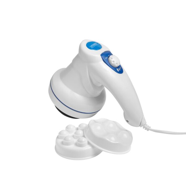 FuncionamentoO Massageador Body Massager é um aparelho de massagem orbital compacto, fácil de usar com qualquer uma das mãos, facilitando a auto. Promove massagens localizadas com seu poderoso motor elétrico de alta rotação, gira 2.200 vezes por minuto, enquanto o sistema orbital gira 360º e aumenta o poder da massagem localizada, com vibrações vigorosas e contínuas. Pode ser usado diretamente nas coxas, braços, bumbum, barriga e onde você precisar. Com seus discos exclusivos, é possível ter o tipo de massagem ideal para cada região do corpo.